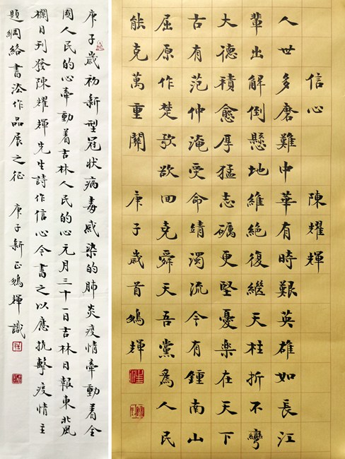 為了鼓舞抗疫斗志,堅定抗疫信心。由人民網吉林頻道、吉林省文學藝術界聯合會聯合主辦開展“人民同心 抗擊疫情 ”吉林省優秀文藝作品征集活動,鼓勵大家用書法、美術、攝影、戲劇、歌曲、廣播電視、曲藝、二人轉、雜技、民間文藝、短視頻等不同形式,記錄中華兒女眾志成城抗擊疫情的感人場景,展現一切在平凡崗位上做出不平凡業績的新時代的英雄們!