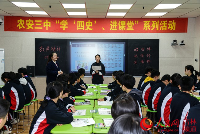 今天我們學習的課程是《學習雷鋒精神,做新時代的接班人》……在農安縣第三初級中學,為學“四史”而專門開設的《道德與法治》課,成為了學生們學習和傳承紅色基因的重要陣地。“學校開展學‘四史’教育以來,師生們進一步端正了學習態度、提升了學習意識。下一步,我們還將繼續加強學校‘四史’建設,提升學生和老師的愛國愛家熱情”農安縣第三初級中學黨支部書記張寶安說。