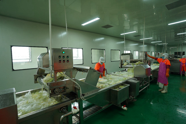 延邊朝鮮族泡菜采用傳統(tǒng)手工和現(xiàn)代流水線相結(jié)合的制作方式。(胡鋼 攝)