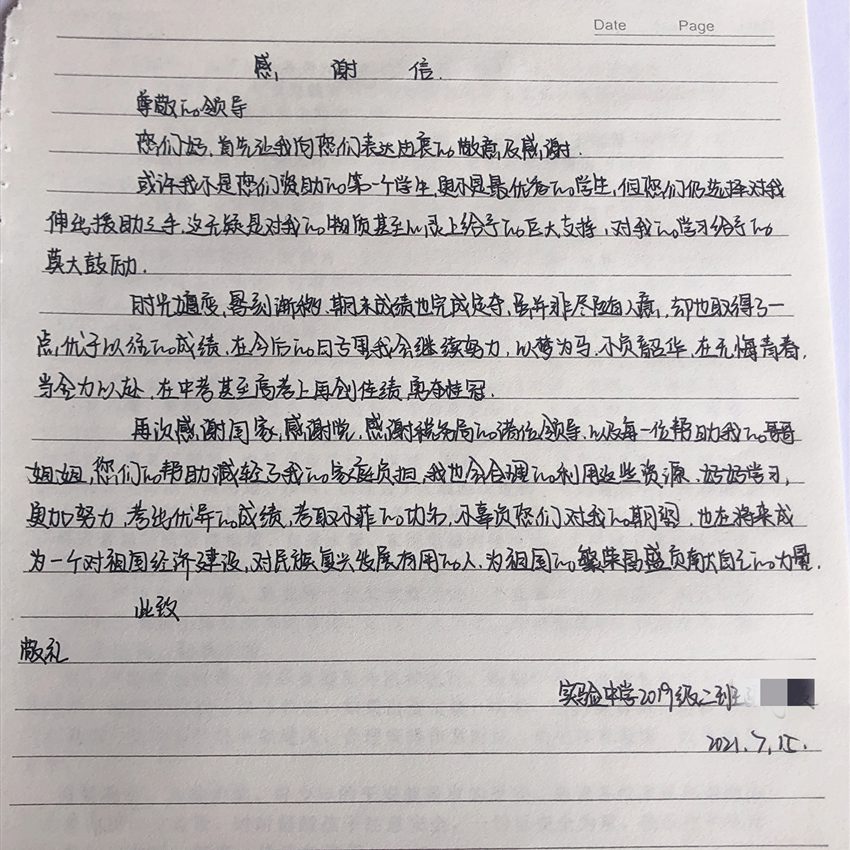 “感謝國家,感謝黨,感謝稅務局的諸位領導及每一位幫助我的哥哥姐姐,您們的幫助減輕了我的家庭負擔,我也會合理的利用這些資源,好好學習,更加努力,考出優異的成績”。7月16日,國家稅務總局乾安縣稅務局機關支部大會上,支部書記張智慧宣讀了這封特殊感謝信——來自乾安縣一名品學兼優的學生張媛媛(化名)。