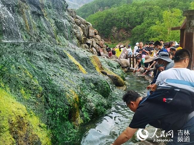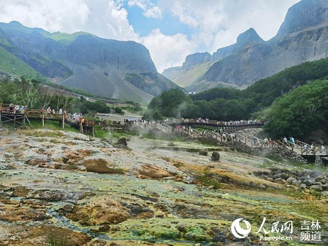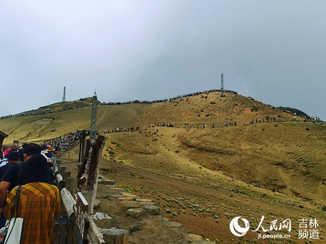 人民網(wǎng)長白山7月27日電 (王海躍)早上八點,長白山天池觀光路上已經(jīng)排起了長龍。“現(xiàn)在天氣非常好,能看到天池,大家可以選擇B路線上山,三分鐘就到了。”在長白山主峰登山入口處,工作人員拿起大喇叭將快速欣賞天池之美的秘籍分享給了游客。