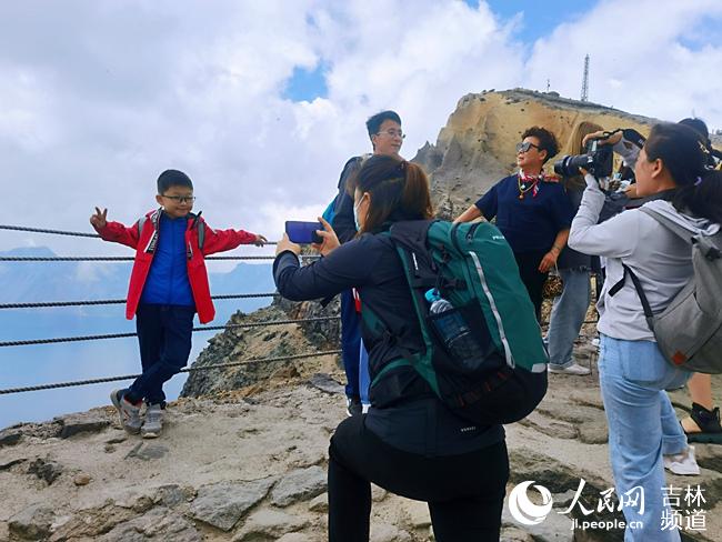 順著工作人員所指的路線登山,很快就到了天池旁。“快幫我在天池旁拍一張,都好幾年沒來了。”“這天池真的一會兒一個樣啊,看現(xiàn)在又起霧了。”……天池旁站滿了游客,大家欣賞美景、拍照留念。夏天到了,充滿靈氣的長白山更多了些人氣。