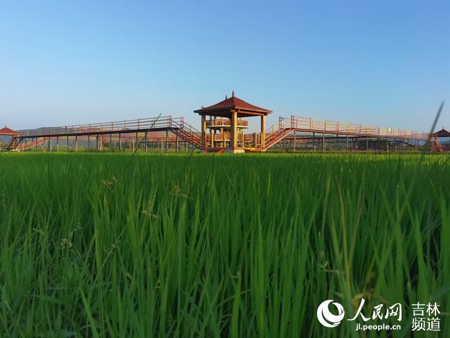 在光東村,稻田里的水稻不僅能吃,還能“看”。“每年夏天都有很多游客來這里打卡拍照,還有拍婚紗照的呢。游客基本都是來這里觀光稻田,順便品嘗一下光東村的大米,體驗一下朝鮮族文化。”玄杰說。