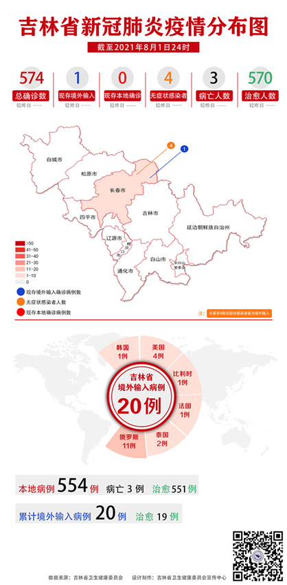 8月1日0-24時(shí),吉林省無(wú)新增確診病例和無(wú)癥狀感染者。