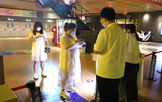 吉視影城在每次觀影結束后,都會用84消毒液為座椅消毒,間隔20分鐘后才安排下一次觀影。此外,影城大廳、休息間等公共區域每兩個小時消毒一次。對外做好顧客記錄、提醒告知服務,所有員工都已接種疫苗,定期進行防疫知識培訓,并做好防疫物資儲備。