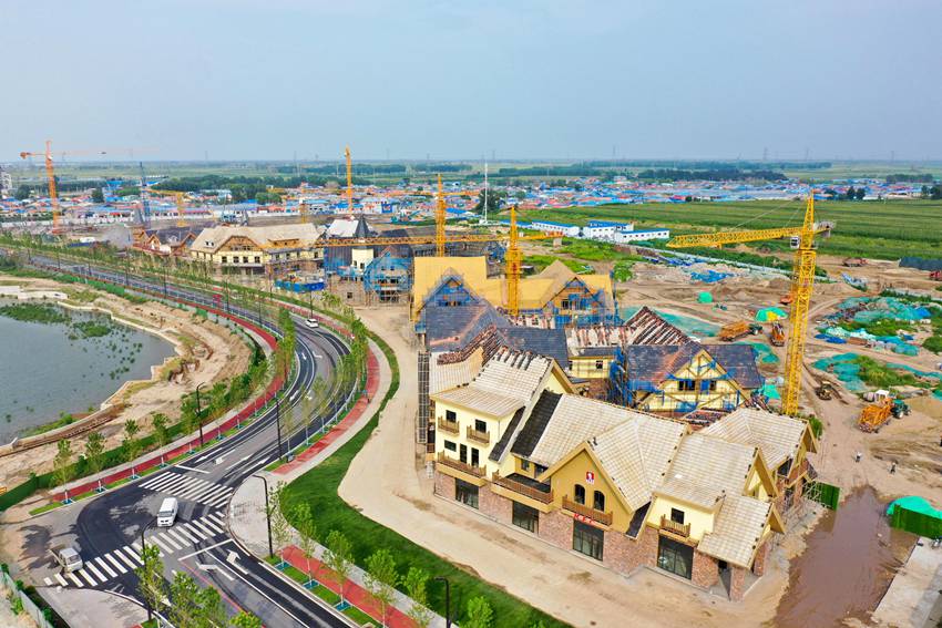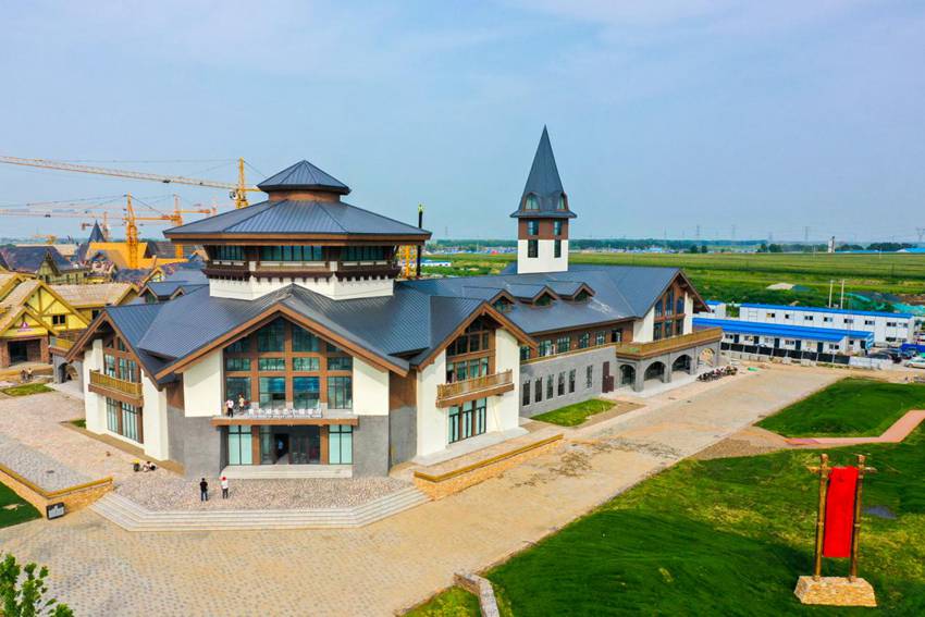 8月初,隨著外墻建設腳手架的拆卸完成,查干湖生態小鎮客廳內外建設裝修基本完工。