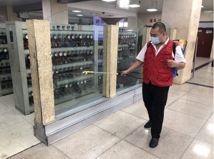“面對疫情,每個青年志愿者都應該出份力,每天把隊組會議室消毒后,我會感覺到很踏實。”正在通風一隊會議室噴消毒水的許德龍說。