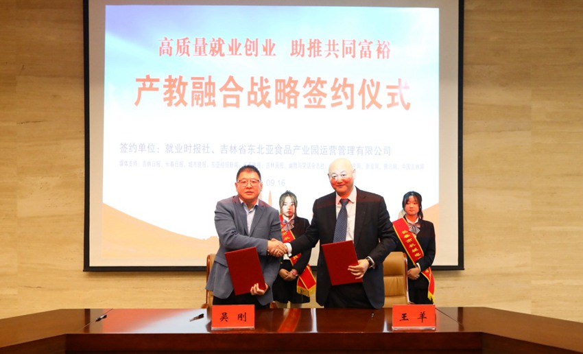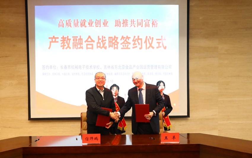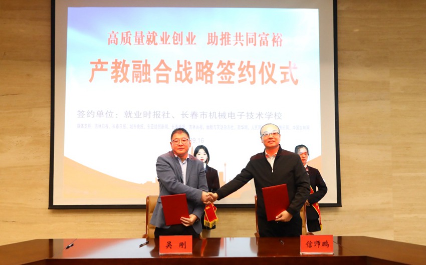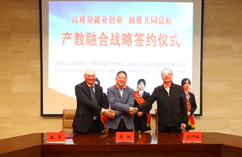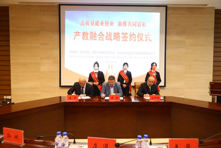 為貫徹落實吉林省委、省政府工作要求,落實就業優先政策、實現高質量就業 、助力共同富裕,9月16日,就業時報社、長春市機械電子技術學校、吉林省東北亞食品產業園區運營管理有限公司舉行“產教融合”戰略簽約儀式。