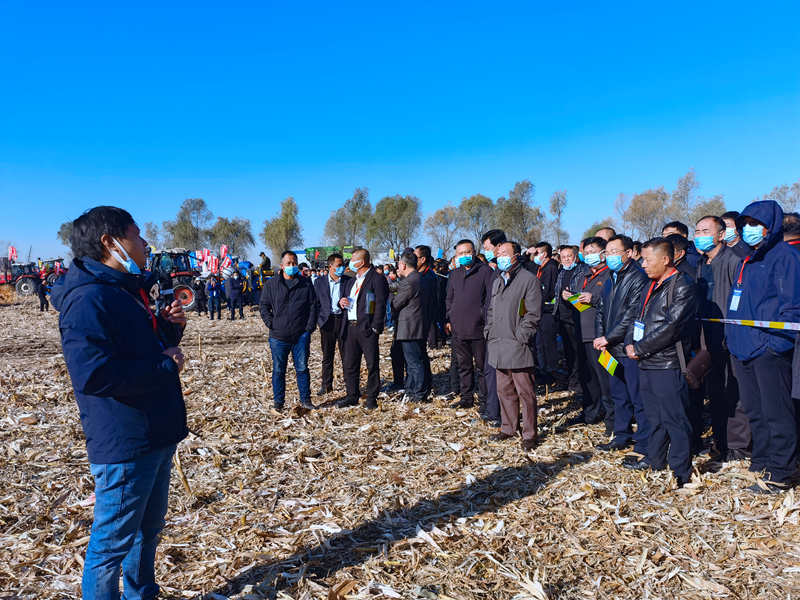 在田間觀摩階段,與會人員在扶余市三岔河鎮腰七號村田間觀摩學習,F場通過專家講解結合機械作業演示的方式了解保護性耕作技術六種作業模式。