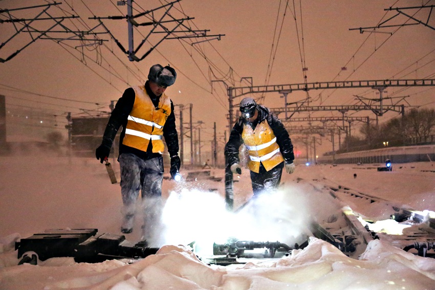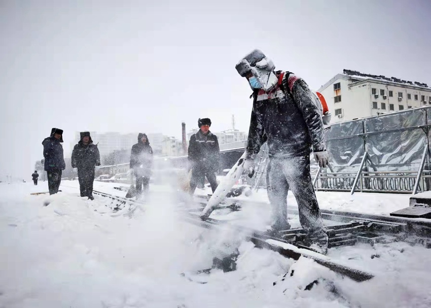 11月6日以來,面對東北地區大范圍雨雪寒潮天氣考驗,19萬名沈鐵干部職工全員上崗,頂風冒雪、晝夜奮戰,眉間裹著冰霜,不間斷地開展鋼軌面除冰,道岔、道口等重點處所積雪清掃,雪不停、人不停,全力以赴保障鐵路大動脈安全暢通。