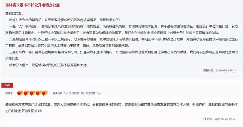 “感謝人民網‘領導留言板’提供了這么好的平臺,讓相關部門及時給出答復,美麗的長春因你們的付出會更加美好!”