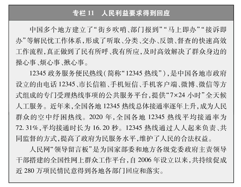 不僅在吉林,近年來,越來越多的“新血液”入駐“領導留言板”。各地持續加大通過網絡走群眾路線的重視力度,讓社會基層治理更精準地順應民心。12月4日,在國務院新聞辦公室發表的《中國的民主》白皮書上,專欄11中還專門提及了人民網“領導留言板”。一個個“急難愁盼”問題的回應和解決,不僅成為廣大群眾與黨政機關的真誠互動,也成為“中國式民主”“全過程人民民主”的生動實踐。