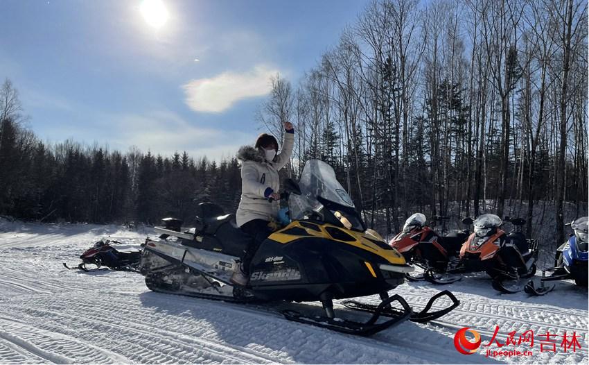 游客駕駛雪地摩感受速度與激情。人民網(wǎng) 李思玥攝
