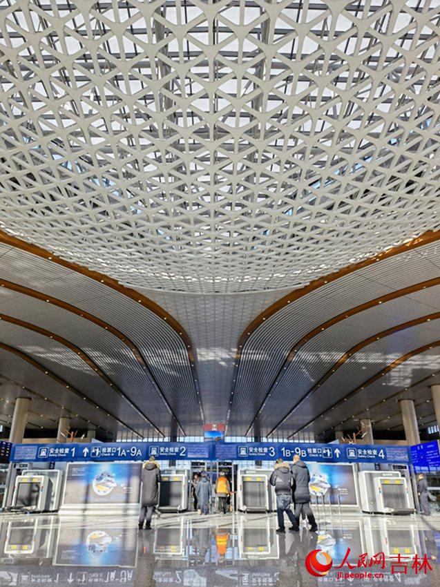 車站候車區通透開闊,站在候車大廳的落地窗前,就能看到大片的原始森林,室內裝修采用了大量的仿木紋設計,天池、粉雪、美人松、長白山十六峰等代表性地域文化元素隨處可見,展現了長白山的獨特風景。