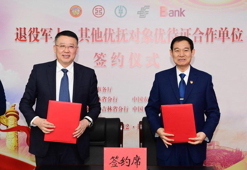 吉林省退役軍人事務廳和合作銀行負責人簽署合作協議。