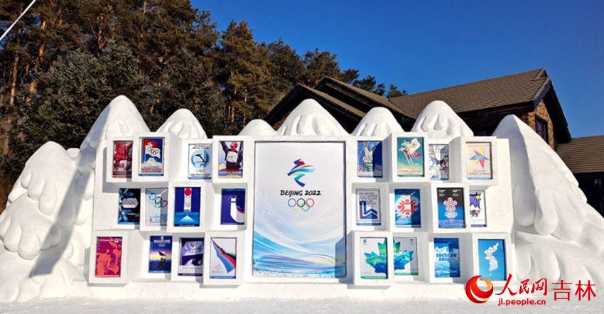 “北京冬奧”主題雪雕。人民網(wǎng) 關(guān)思聰攝