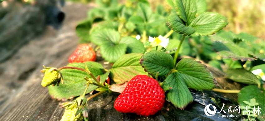 已經成熟的草莓散發著誘人的香甜。人民網 李成偉攝