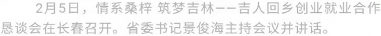 農歷大年初五,北京冬奧會剛剛開幕,白山松水處處洋溢著新春佳節和盛大賽事的喜慶氛圍。今天(2月5日),吉林省委書記景俊海主持召開情系桑梓 筑夢吉林——吉人回鄉創業就業合作懇談會,與回鄉過年的吉林游子共賀新春、暢敘鄉情,希望廣大吉人深入貫徹習近平總書記視察吉林重要講話重要指示精神,聚焦家鄉創業就業合作,充分激發奮斗有我、就在吉林的澎湃激情,持續匯聚筑夢吉林、共促振興的奮進洪流。吉林省委副書記、省長韓俊介紹吉林省經濟社會發展情況。