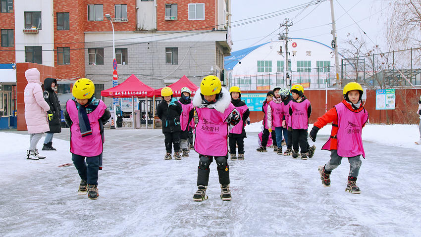 通化市育紅小學學生們在進行“腳滑子”運動。(受訪者供圖)