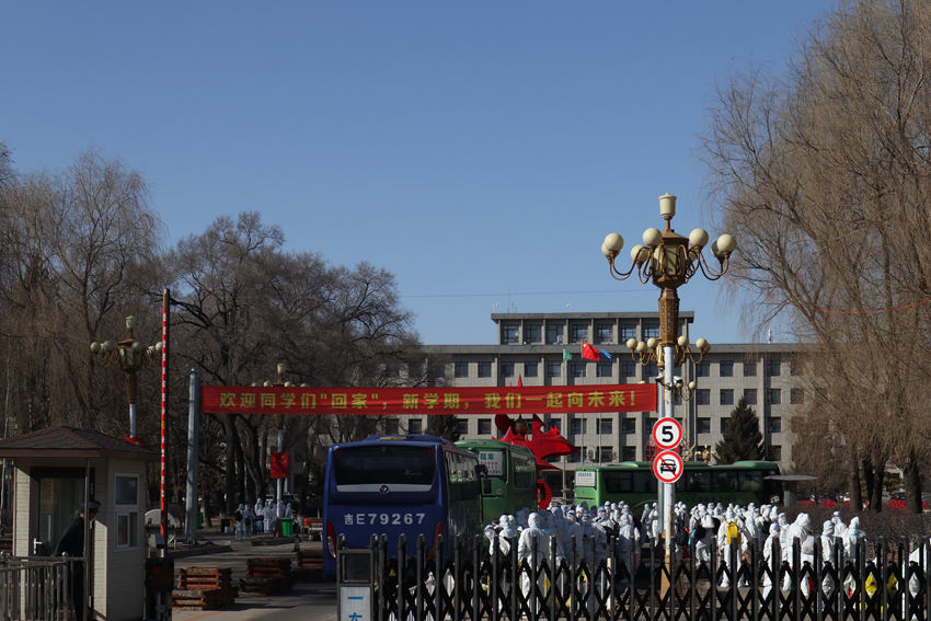 3月11日上午8時05分,最后一輛大巴駛離吉林農業科技學院。至此,全校6556名學生全部轉運完畢,在轉運過程中同時安排了85名帶隊老師,妥善安置學生。其中,轉運吉林市607人,其余6034人分別轉運至遼源市、白城市、白山市、通化市、松原市和長白山管委會。