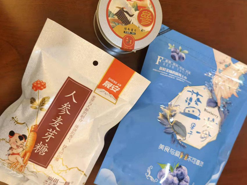 撫松縣為學生們購置了人參糖、藍莓干和人參蜜片等小零食。(撫松縣委宣傳部供圖)
