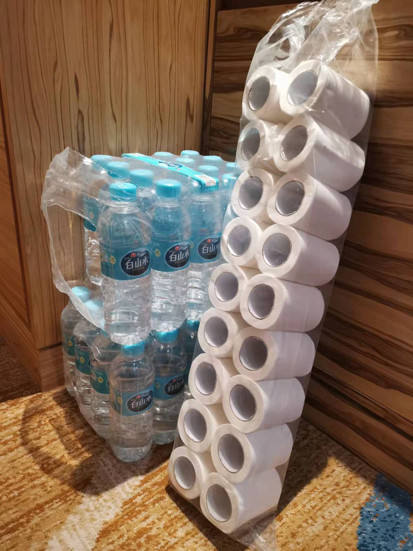 長白山管委會為學生們準備的水和生活用品。(受訪者供圖)