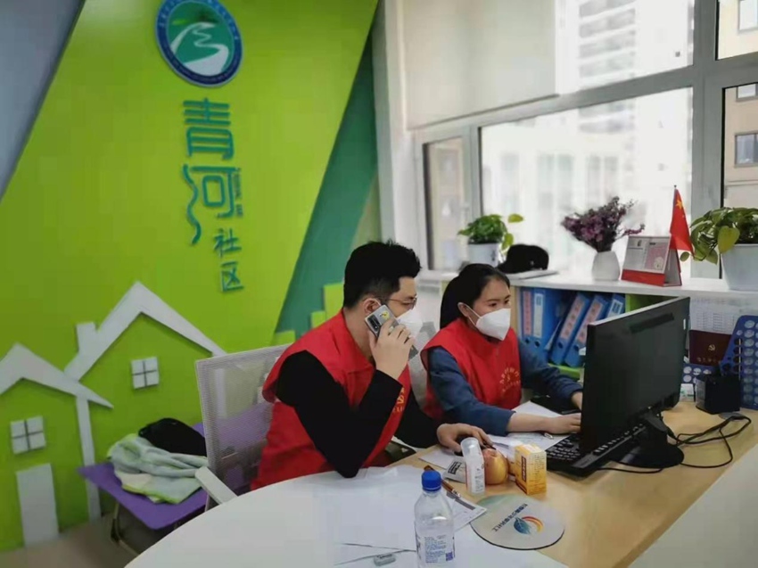 吉林大路支行的志愿者在清河社區協助開展電話排查。九臺農商銀行供圖