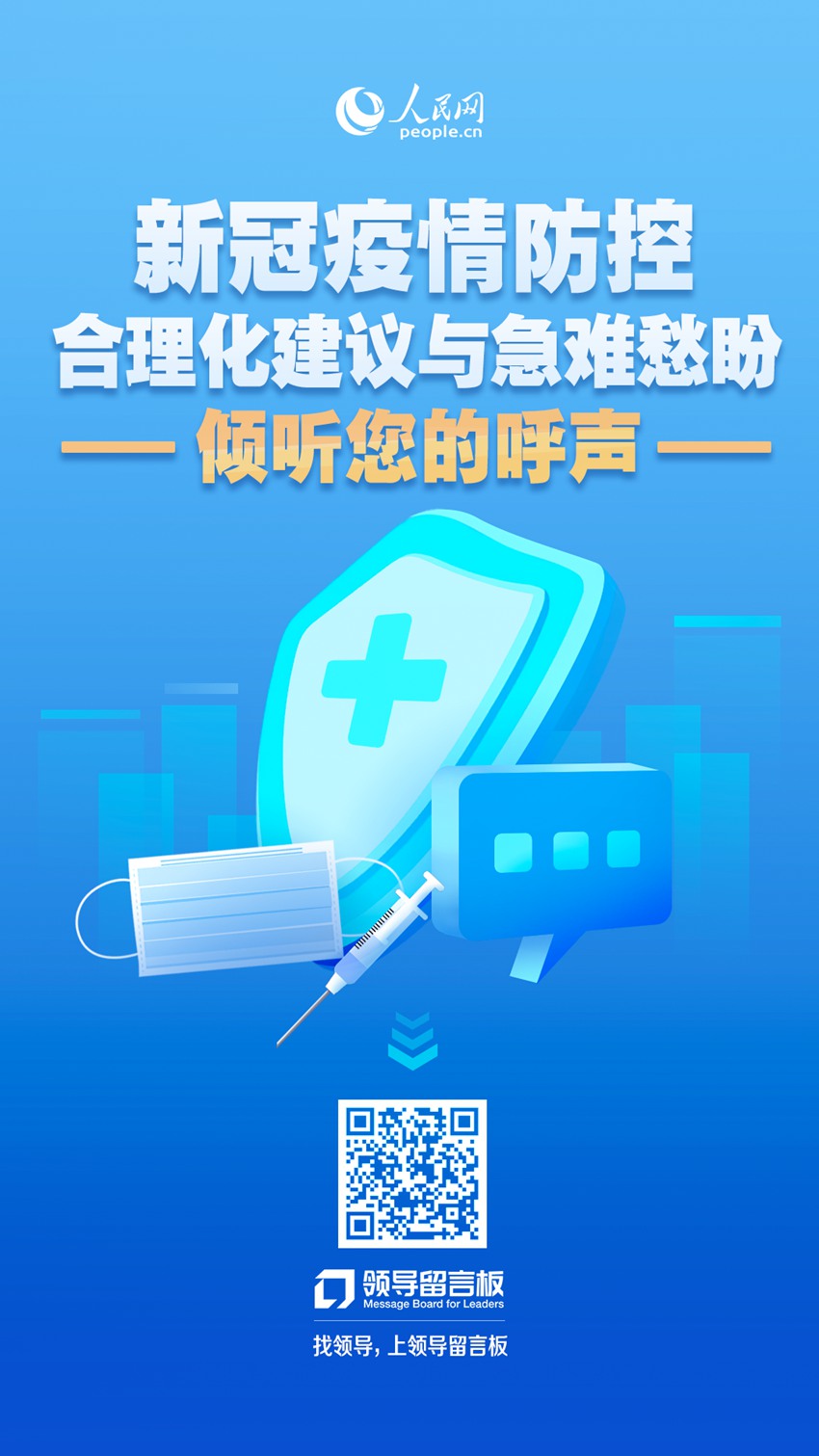 加強疫情防控,傾聽您的呼聲。關(guān)于疫情防控,您還有哪些針對性需求或建議,歡迎到人民網(wǎng)“領(lǐng)導(dǎo)留言板”留言。
