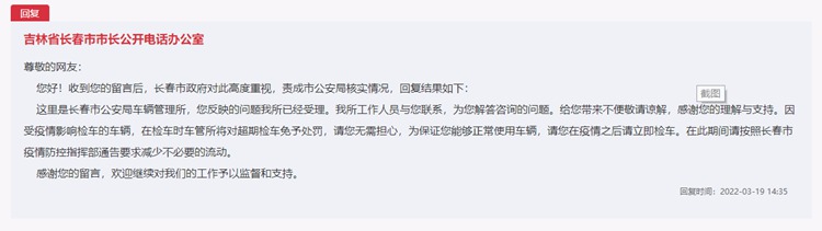 收到留言后,長春市政府對此高度重視,責成長春市公安局核實情況,長春市公安局車輛管理所及時給予回復。