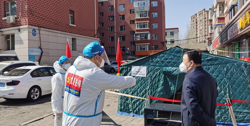 吉林省委常委、組織部部長張恩惠隨機抽查社區(qū)管控黨員先鋒崗情況。