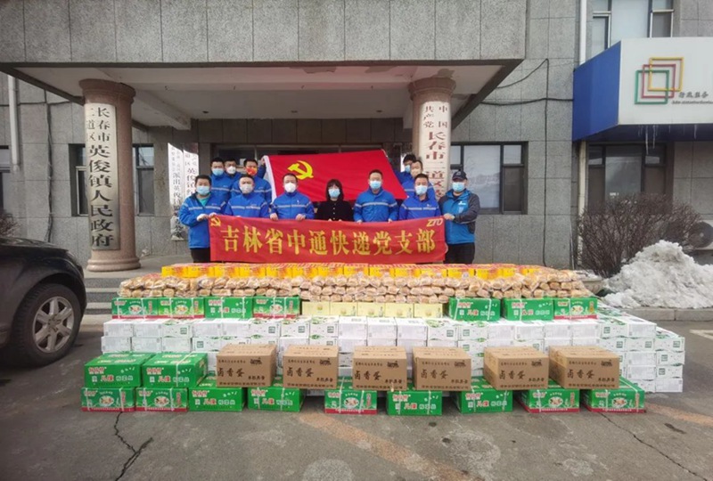 吉林中通快遞黨支部向英俊鎮(zhèn)捐贈疫情防控保障物資。