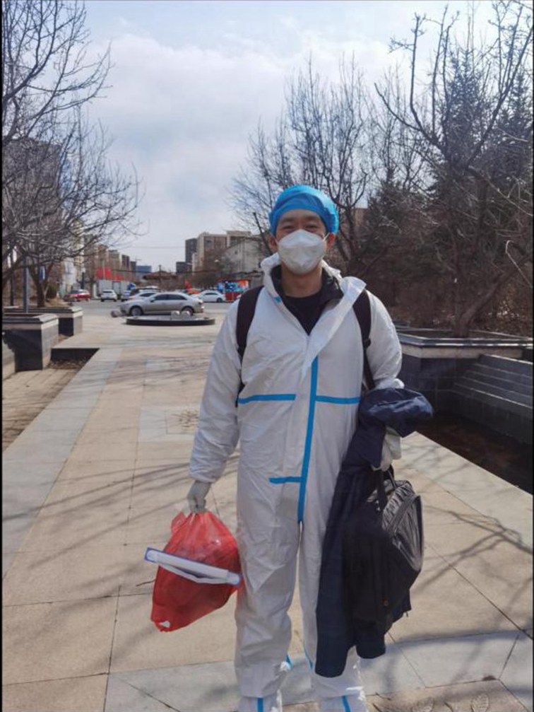 王銘經常說,“防疫一線做‘小事’,做好小事無大事。”事實上也是如此,他在每一件“小事”上都全力以赴。3月26日,南湖街道轄區(qū)內確診了一位特殊病人,是援建方艙后還在隔離期間的小伙子,在得知患上新冠肺炎后,小伙子情緒低落,因恐懼傳染給家人,產生情緒波動。王銘知道后,主動加他微信,與其交流談心,幫其緩解壓力,從身體狀況聊到志愿者經歷再到興趣愛好,期間王銘一直積極協調,盡早幫助其轉運,小伙子在方艙安頓好后,第一時間給王銘發(fā)來語音:“雖然我得了新冠肺炎,但我不后悔去當志愿者,假如再有一次機會選擇的話,我還會去。”雖然隔著電話屏幕,但“溫暖”在傳遞。除了白天志愿服務隊的日常工作外,下班后王銘還會幫助社區(qū)做一些物資搬運、配送等力所能及的“小事”。一次外出檢查歸來途中,王銘發(fā)現街邊焦急地站著三個人,經仔細詢問,原來是一位年近80患有尿毒癥的老大爺要去透析,因資源緊張,現在聯系不到去醫(yī)院的車輛,王銘二話不說就幫助其轉運到進行透析的醫(yī)院,下車前王銘還留下電話號碼,叮囑到:“以后找不到車輛,就打我電話。”