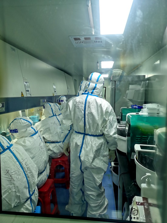 不僅如此,4月1日,張志強帶領隊伍又接管了一座由內蒙古自治區支援吉林市的方艙實驗室,克服耗材和設備不匹配等困難,通宵達旦開展設備性能驗證、消毒等工作。4月2日下午1點,方艙實驗室正式接受標本,開展檢測工作。