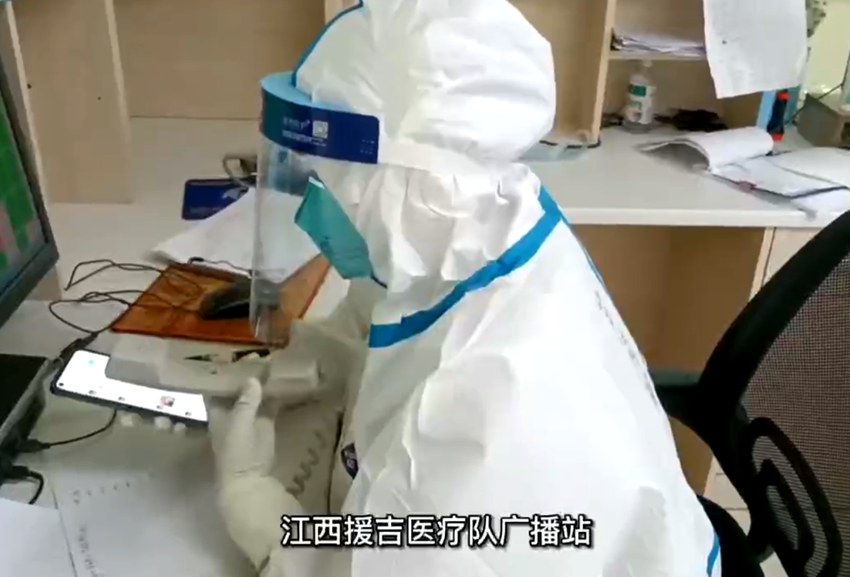不僅如此,為了讓患者放松心情,江西醫療隊利用醫院的呼叫系統創新制作了一個小節目——廣播之聲。“今天是4月8日,天氣晴,讓我們用微笑迎接新的一天吧……”據介紹,江西省援吉醫療隊每天都會通過呼叫系統播報當日的日期、天氣等,給大家放一些好聽的音樂,讓正能量環繞在患者周圍。患者治愈出院時,他們也會通過廣播播報:“36床患者,祝賀你要出院啦。出院后也要增強營養攝入。祝你每天健康、快樂!”每一次播報,都能讓患者越來越開朗樂觀;每一次播報,都能讓醫院氛圍越來越積極向上。