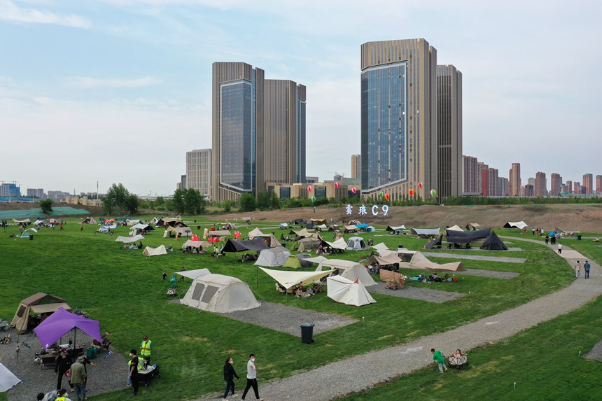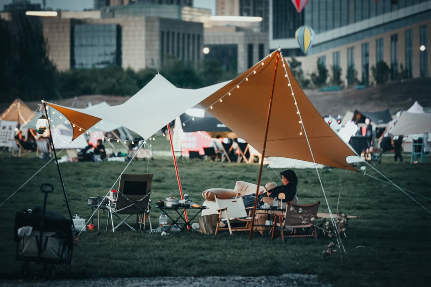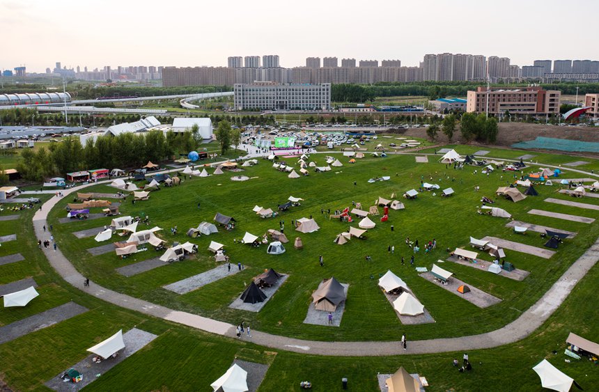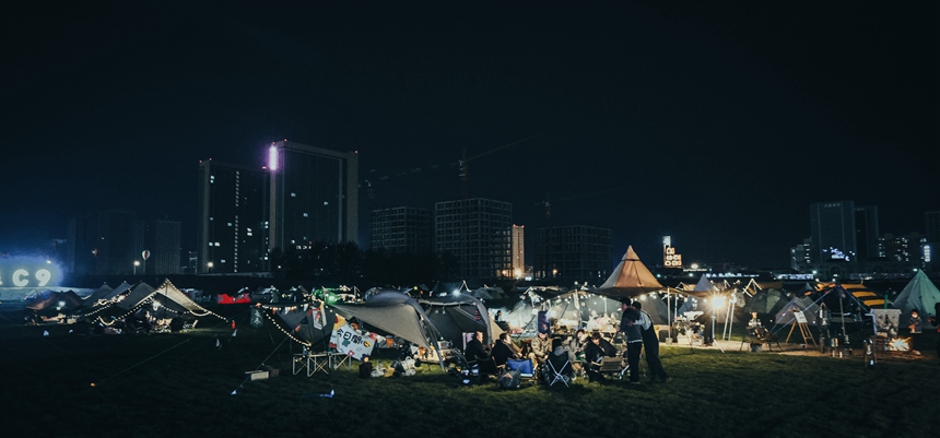 現(xiàn)場(chǎng),數(shù)百頂帳篷如同彩色寶石,鑲嵌在無(wú)邊草地上,久違的party聚會(huì)、業(yè)態(tài)繁多的營(yíng)地市集、孩子與萌寵的互動(dòng)嬉鬧、熱血沸騰的飛盤(pán)運(yùn)動(dòng)……人潮涌動(dòng)、熱鬧非凡。