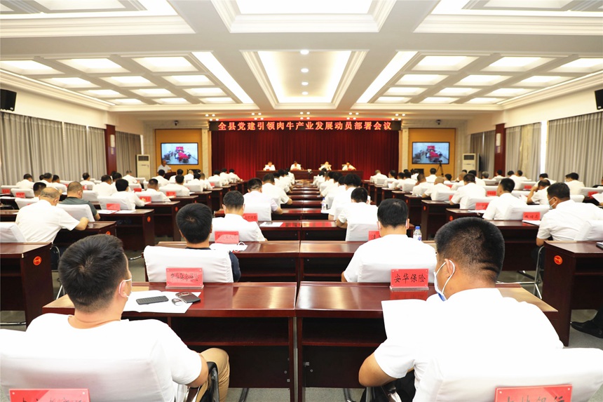 農安縣委副書記、代縣長劉百軍主持會議。他強調,全縣上下要向縣委部署聚焦、向全縣大局聚力,以全縣黨建引領“一盤棋”,推動肉牛產業提速發展,全神貫注抓落實、全力以赴抓推進、全程賽馬抓實效,帶動黨組織、企業、農業合作社、種植養殖大戶及農戶聯建共建、優勢互補、多方互動、共同發展,確保年底50萬頭肉牛的既定目標早日實現,為明年肉牛產業取得更大的突破奠定堅實基礎。