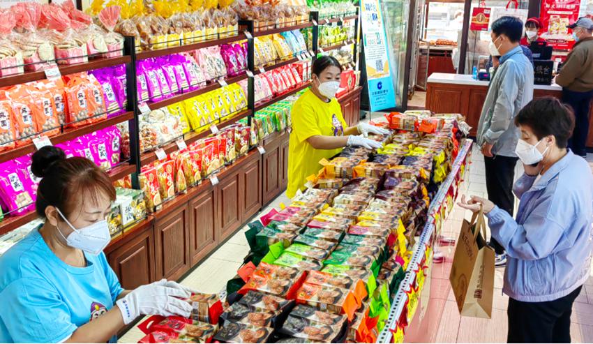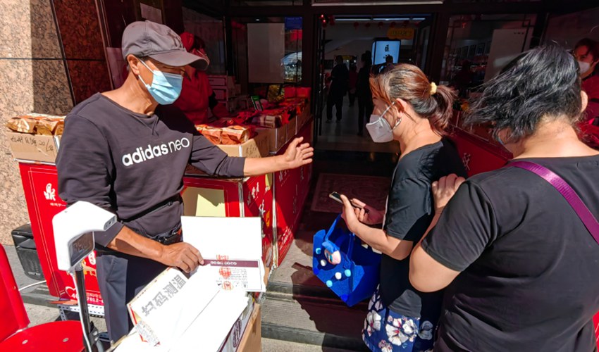 “我是老顧客了,但這也是這波疫情以來第一次來店里購買。中秋馬上到了,疫情形勢(shì)也緩和了些,才想著來店里。”67歲的張大爺家住附近,上一次過來還是8月底,為在外地的長(zhǎng)春朋友訂購家鄉(xiāng)風(fēng)味。