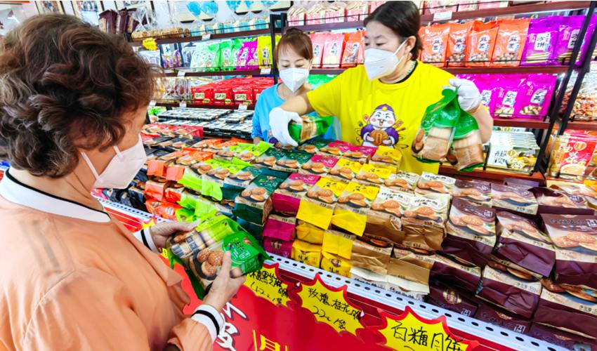 記者看到,店內(nèi)的商品供應(yīng)充足,除部分月餅禮盒脫銷外,其他商品基本都能滿足顧客的購買需求。“現(xiàn)在庫存尚可,怕顧客老百姓買不到月餅,公司提前一個(gè)多月便采購原料為中秋節(jié)慶做準(zhǔn)備,基本沒受疫情影響。”該公司市場(chǎng)營銷總監(jiān)薛飛說。