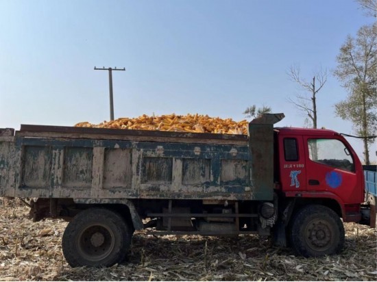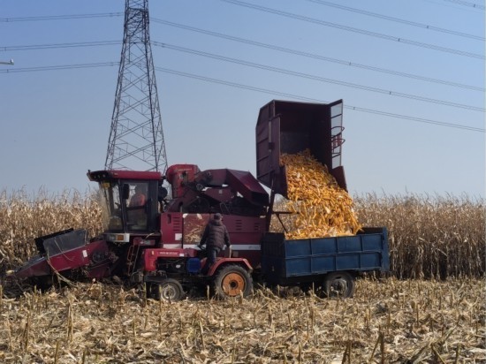 在長(zhǎng)春市農(nóng)安縣楊樹林鄉(xiāng)偏坡子村,伴隨著農(nóng)機(jī)的陣陣轟鳴聲,近三米高的玉米秸稈被粉碎,一顆顆玉米被剝離運(yùn)輸,運(yùn)向不遠(yuǎn)處的烘干塔。
