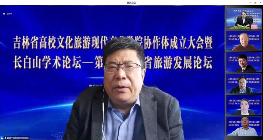 隨后,以“新發(fā)展格局下吉林省文旅產(chǎn)業(yè)融合與冰雪旅游高質(zhì)量創(chuàng)新發(fā)展”為主題的長白山學(xué)術(shù)論壇——第七屆吉林省旅游發(fā)展論壇正式拉開帷幕,論壇由學(xué)校副校長趙瑩主持。論壇上,中國旅游研究院院長、文化和旅游部數(shù)據(jù)中心主任戴斌教授,教育部旅游管理類專業(yè)教學(xué)指導(dǎo)委員會主任、國家教學(xué)名師、云南大學(xué)田衛(wèi)民教授,中國旅游協(xié)會教育分會會長、教育部長江學(xué)者特聘教授、中山大學(xué)保繼剛教授,文化和旅游部“冰雪旅游場地裝備與智能服務(wù)技術(shù)”重點(diǎn)實(shí)驗(yàn)室主任、吉林大學(xué)商學(xué)與管理學(xué)院副院長辛本祿教授,吉林省旅游管理類專業(yè)教學(xué)指導(dǎo)委員會主任、長春大學(xué)旅游學(xué)院校長助理孫國霞教授分別以《冰雪之上 旅游新局》《新文科背景下的國家一流專業(yè)建設(shè)路徑》《后疫情時代中國旅游發(fā)展的思考》《東北振興新突破——冰雪經(jīng)濟(jì)高質(zhì)量發(fā)展探索》《文旅現(xiàn)代產(chǎn)業(yè)學(xué)院建設(shè)思考與探索》為題作主旨發(fā)言。論壇現(xiàn)場學(xué)術(shù)氛圍濃厚、氣氛熱烈,專家學(xué)者高見頻出,多維度分析了吉林省文旅產(chǎn)業(yè)融合與冰雪旅游高質(zhì)量創(chuàng)新發(fā)展所面臨的形勢、發(fā)展態(tài)勢、機(jī)遇與挑戰(zhàn),針對潛在優(yōu)勢、發(fā)展思路進(jìn)行廣泛深入的學(xué)術(shù)交流,為吉林省文旅產(chǎn)業(yè)融合、開發(fā)利用冰雪資源、發(fā)展冰雪旅游產(chǎn)業(yè)及文旅人才培養(yǎng)獻(xiàn)計(jì)獻(xiàn)策,探索路徑,提供學(xué)界觀點(diǎn),學(xué)術(shù)參考。?
