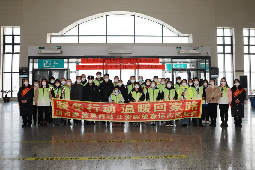 1月7日,春運(yùn)首日,中國鐵路沈陽局集團(tuán)公司長春車務(wù)段德惠西站候車室內(nèi)一派喜慶熱鬧的景象。候車室內(nèi)張燈結(jié)彩、裝扮一新,共青團(tuán)德惠市委、長春車務(wù)段團(tuán)委聯(lián)合德惠市志愿者協(xié)會共同舉辦“情暖旅途、讓愛綻放”春運(yùn)志愿服務(wù)啟動儀式 ,長春車務(wù)段2023年春運(yùn)工作就此拉開序幕。