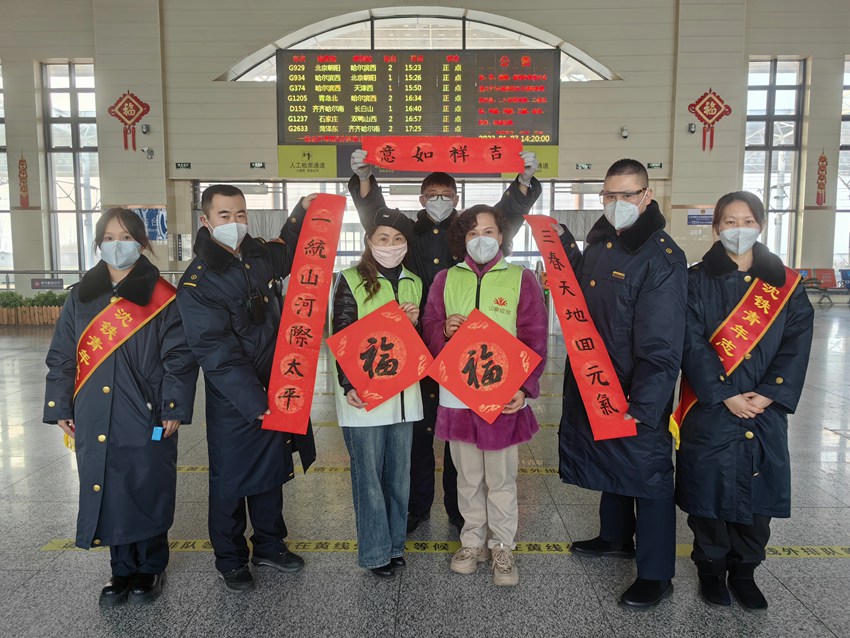 新春走基層丨春運(yùn)首日:長春火車站送福年味濃