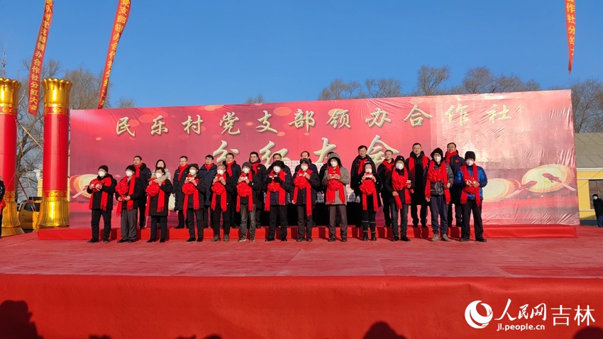 民樂村黨支部領(lǐng)辦合作社分紅大會現(xiàn)場熱鬧非凡。人民網(wǎng) 李成偉攝