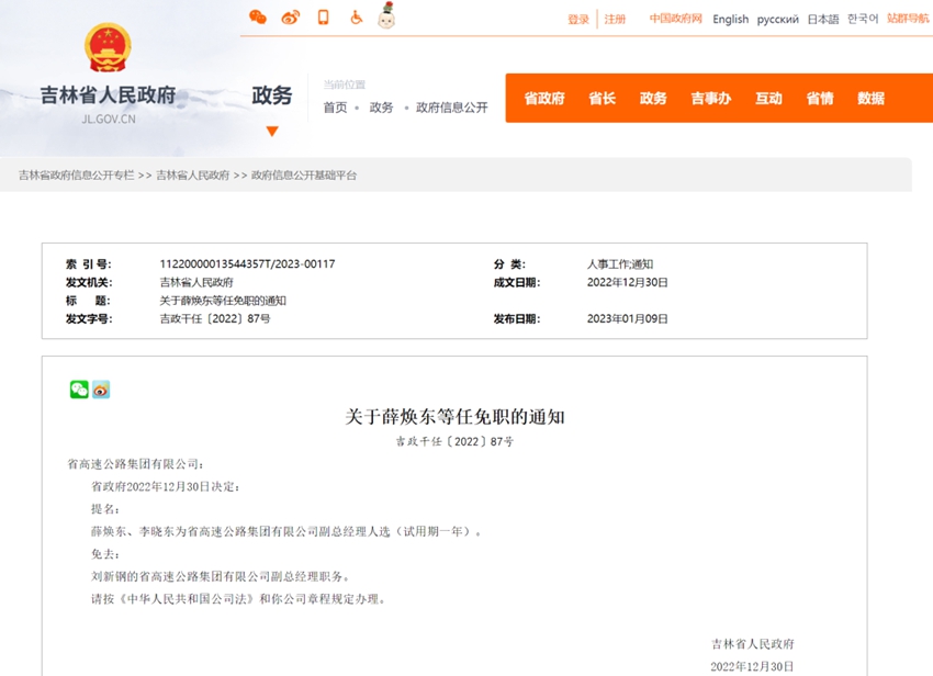 薛煥東、李曉東為省高速公路集團有限公司副總經理人選(試用期一年)。