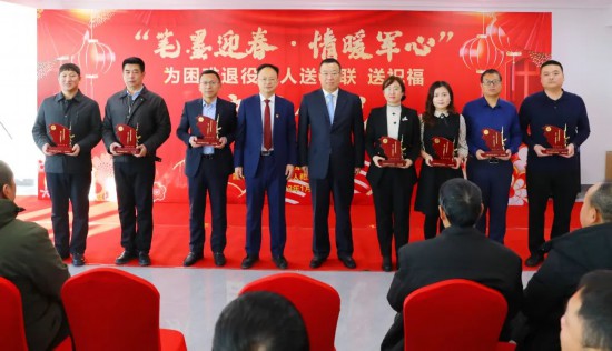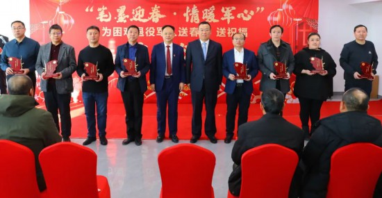 參加啟動(dòng)儀式的領(lǐng)導(dǎo)向困難退役軍人代表贈(zèng)送春聯(lián)