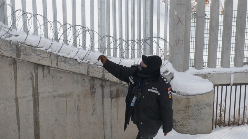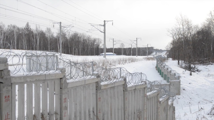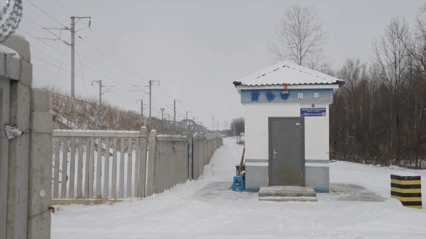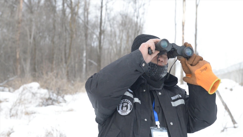 “現在氣溫零下32攝氏度,夜里比這還要冷。”1月24日14時整,地處長白山原始林區的沈佳高鐵白敦段8號崗亭,中國鐵路沈陽局集團有限公司高鐵護路巡防員李國君身著“護路”標識的黑色工作服,肩上斜背著G網電話,手拿望遠鏡,腳穿一雙高腰棉鞋,踏著厚厚積雪,由8號崗亭沿高鐵下行線封閉網外向永慶站方向巡檢。