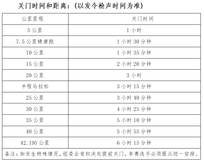 附比賽路線和關門時間及距離: