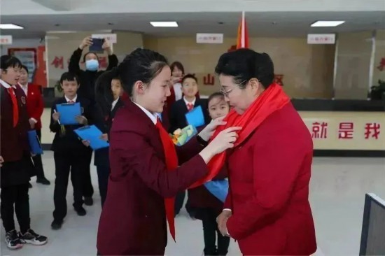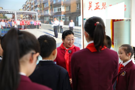 少先隊員代表為吳亞琴佩戴紅領巾,并獻上美麗的鮮花,表達他們由衷的敬佩之情。