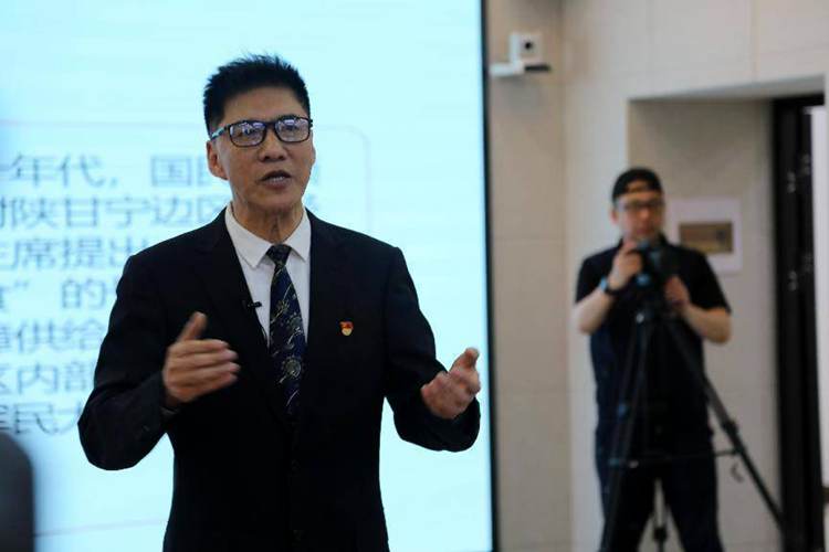 在這堂培訓課上,王明明以“思政課‘融’起來,大學生動起來”為主題,以文藝結合教育,將紅色歌曲的演唱、表演融入到思政教育課堂中,他以歌敘史,以史串歌,將時代精神、紅色歌曲、美育教育融入課程講述中,為學員帶來富有個人特色的“用紅歌講黨史”思政課,現場掌聲不斷,氣氛熱烈。王明明時而深情講述,時而慷慨而歌,時而與學員進行親切幽默的互動,用靈活有趣、新穎獨特的表達方式,為現場學員們進行了一次深刻的思政教育,也為高校思政教育工作提供了新的模式和發展思路。