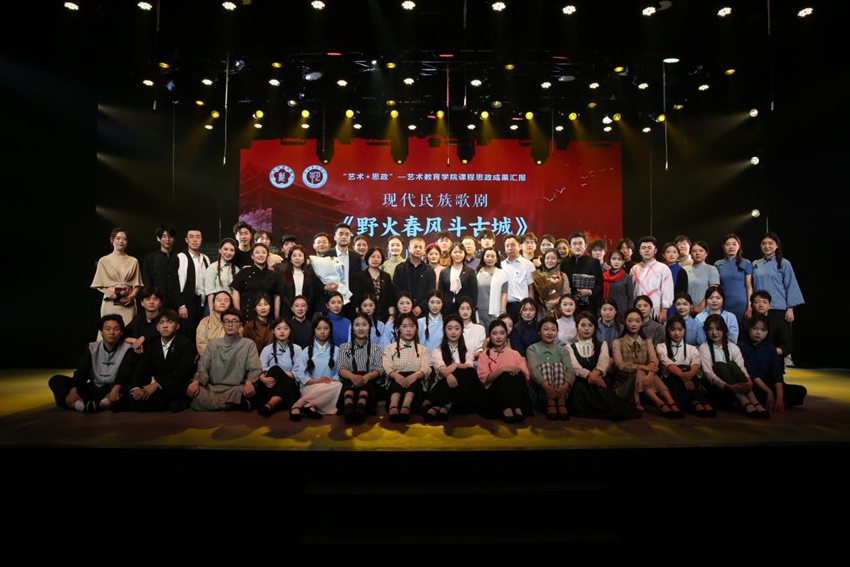 傳承紅色基因,鑄就紅色信仰。為推進(jìn)課程思政建設(shè),落實立德樹人根本任務(wù),在吉林藝術(shù)學(xué)院黨委的堅強(qiáng)領(lǐng)導(dǎo)下,藝術(shù)教育學(xué)院用“藝術(shù)+思政”賡續(xù)紅色血脈,以歌劇的表現(xiàn)形式將思政課堂拓展到舞臺,將現(xiàn)代民族歌劇《野火春風(fēng)斗古城》經(jīng)典片段匯報演出活化成紅色教材,生動再現(xiàn)中國人民堅強(qiáng)不屈、同仇敵愾、不怕犧牲、敢于勝利的偉大民族精神,引導(dǎo)廣大師生傳承紅色精神,推動中國特色社會主義思想主題教育走深走實,入腦入心。